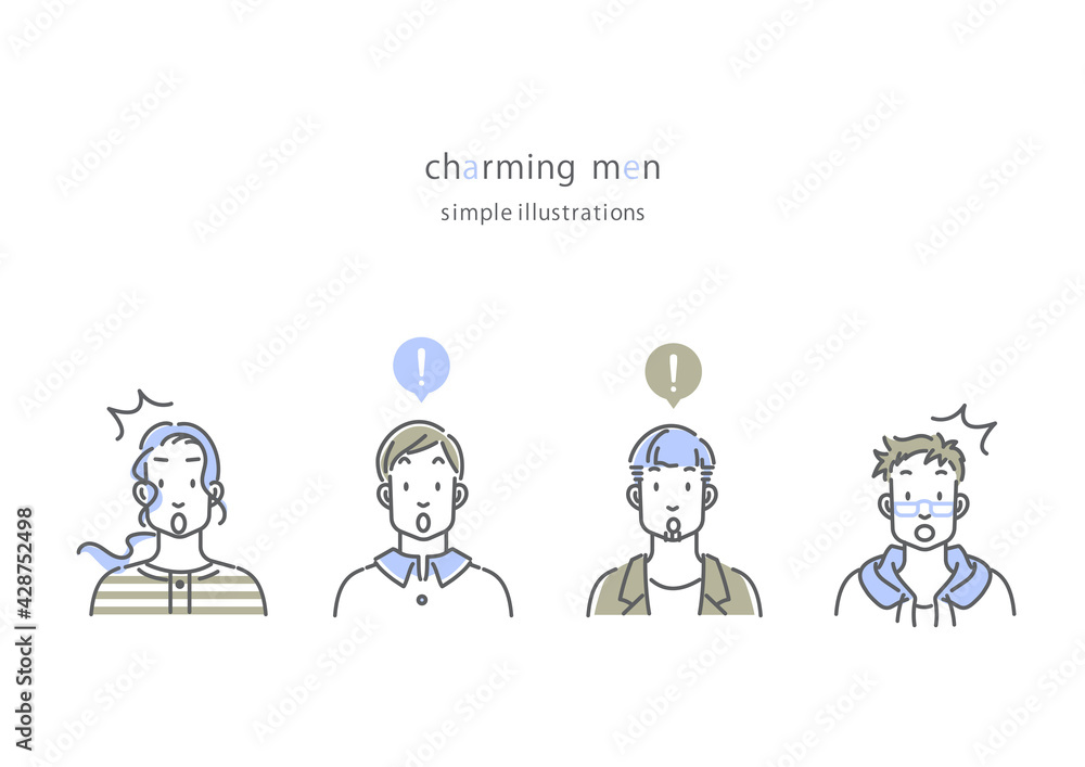 シンプルでおしゃれな線画の男性4人のイラスト素材セット びっくりする 2色 黄色 グレー Buy This Stock Illustration And Explore Similar Illustrations At Adobe Stock Adobe Stock